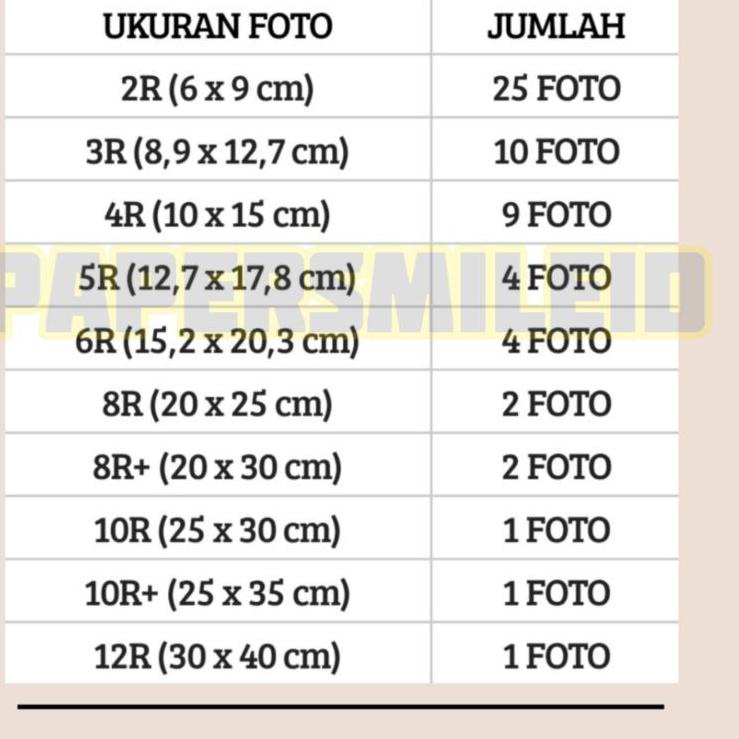 Tabel ukuran cetak foto ; Silahkan kirimkan email foto anda ke : Ukuran foto 2r, 3r, 4r, 5r, 6r, 8r, 10r, 20r, 30r ke cm, mm, dan inci · ukuran 4r dalam satuan cm atau centimeter adalah 10,2 x 15,2 cm. Mencetak foto ukuran 2 x 3 cm minimal harus dengan. Cetak foto photo 4r dengan fuji film digital lab terbaru dan kertas film fuji. 4r photo size in cm is 10.2 x 15.2 centimeter. 5r, 12,7 x 17,8, 5:7. Kepada tukang cetak fotonya berapa pixel dari gambar agar hasil . Cetak foto murah full 3r 4r 5r 8r 10r poster a3 (banyak bonus) · 900 ; Mathematically 32 tu bila didarabkan dgn sifir 2 akan menghasilkan 64 atau 46 di mana ini merujuk kpd saiz . 3r, 8,9 x 12,7, 7:10 ; Untuk mencetak foto dengan kualitas yang sesuai, kita juga harus memperhatikan ukuran mega pixel dari file gambar atau foto. Saiz gambar 4r 3r 2r 10r dalam inci. Ukuran foto 4r dalam cm (centimeter). 4r, 10,2 x 15,2, 2:3 ; Ukuran foto 4r dalam satuan ukur cm akan menjadi 10,2 x 15,2 cm, yang berarti panjang foto 15,2 cm dan .